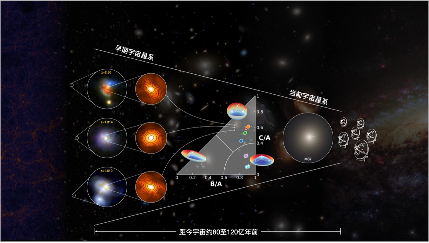 研究人员通过亚毫米波段的独特视角,结合创新的分析技术,发现早期宇宙星暴星系中极端活跃的恒星形成活动可能导致星系中心区域恒星质量的快速积累,进而促进原位核球结构的形成。