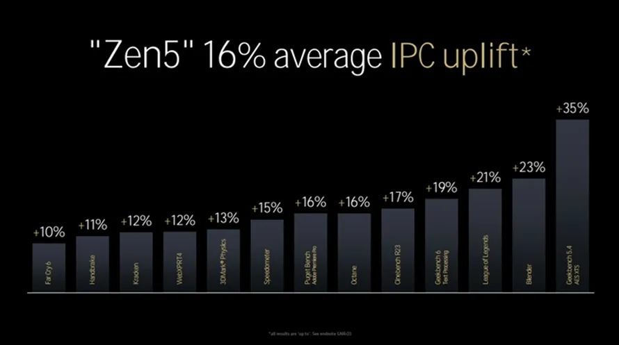 针对游戏玩家来说,游戏性能才是最为重要,而游戏性能往往与单线程性能栖息相关,Zen 5架构的加持可以让处理器的IPC提升16%,从而带动游戏性能水涨船高。
