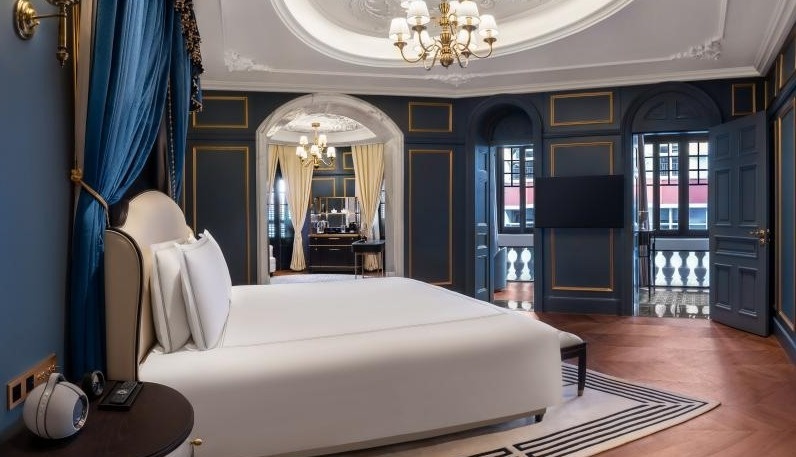 走进房间,屋内吊灯、壁炉柜、石膏线、拱形门窗、各类艺术品共同组成了融合多元的设计风格。虽然房间临街,但是不觉吵闹,不时有参观的人寻找各种角度拍照。一位参观的宾客感叹道,“好出片!这里肯定会成为大家的‘打卡地’”。