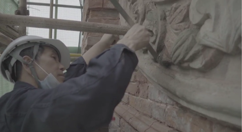 在施工阶段,重点保护“巴公房子”的红瓦坡屋面、穹顶、清水墙、水刷石线条、红砂岩勒脚、铸铁篦子、木门窗、铁艺栏杆、石材线条和台阶等元素。其中,光清水墙修缮就有十一道工序,从墙面清理到最后的憎水处理,每道工序都是工匠师傅们手工完成,根据不同的破损程度采取不同的施工工艺。