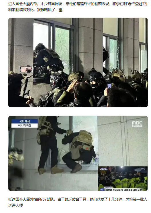 当然,尹锡悦的另一大败笔是没有控制住对手李在明,这本该是重中之重。作为经历过民主斗争的老运动员,李在明不但没有坐以待毙,反而主动进攻。可以说,他是在众目睽睽之下,当着所谓戒严部队的面,翻墙进入国会,领导了议员进行坚决斗争。当他翻墙进入国会的那一刻,实际上尹锡悦就输了大半。
