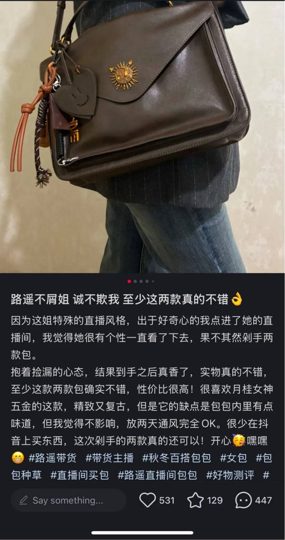 另有一名网友称,在路遥直播间,最终下单了一款16.9元的包, “看直播的时候抱着好奇心买的。”在这篇笔记下,两百余条评论里有不少网友都在使用路遥语录,也有网友晒自己的购买记录。这让许多围观网友惊讶道,“你们来真的啊?说好一起看热闹,怎么还买上了。”