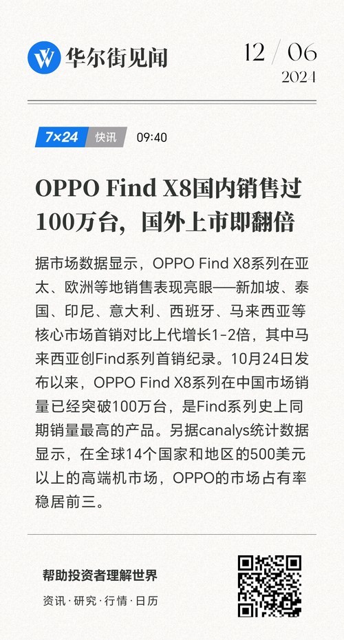 作为OPPO全新一代旗舰手机,OPPO Find X8系列取得了非常优秀的成绩,根据市场数据显示,OPPO Find X8系列在中国市场的销量已经突破了100万台,创造了Find系列新的销售记录。与此同时,OPPO Find X8系列也在海外市场取得了突破,在多个国家创造了销量新高。