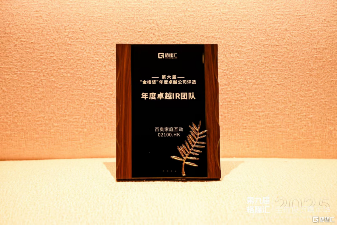 近日,格隆汇举办“第九届•格隆汇•全球投资嘉年华•2025”。其中,百奥家庭互动荣获“年度卓越IR团队(100亿市值以下)”奖项,无疑是对过去一年百奥家庭互动在投资者关系活动中的工作,以及业务运营等方面的肯定。