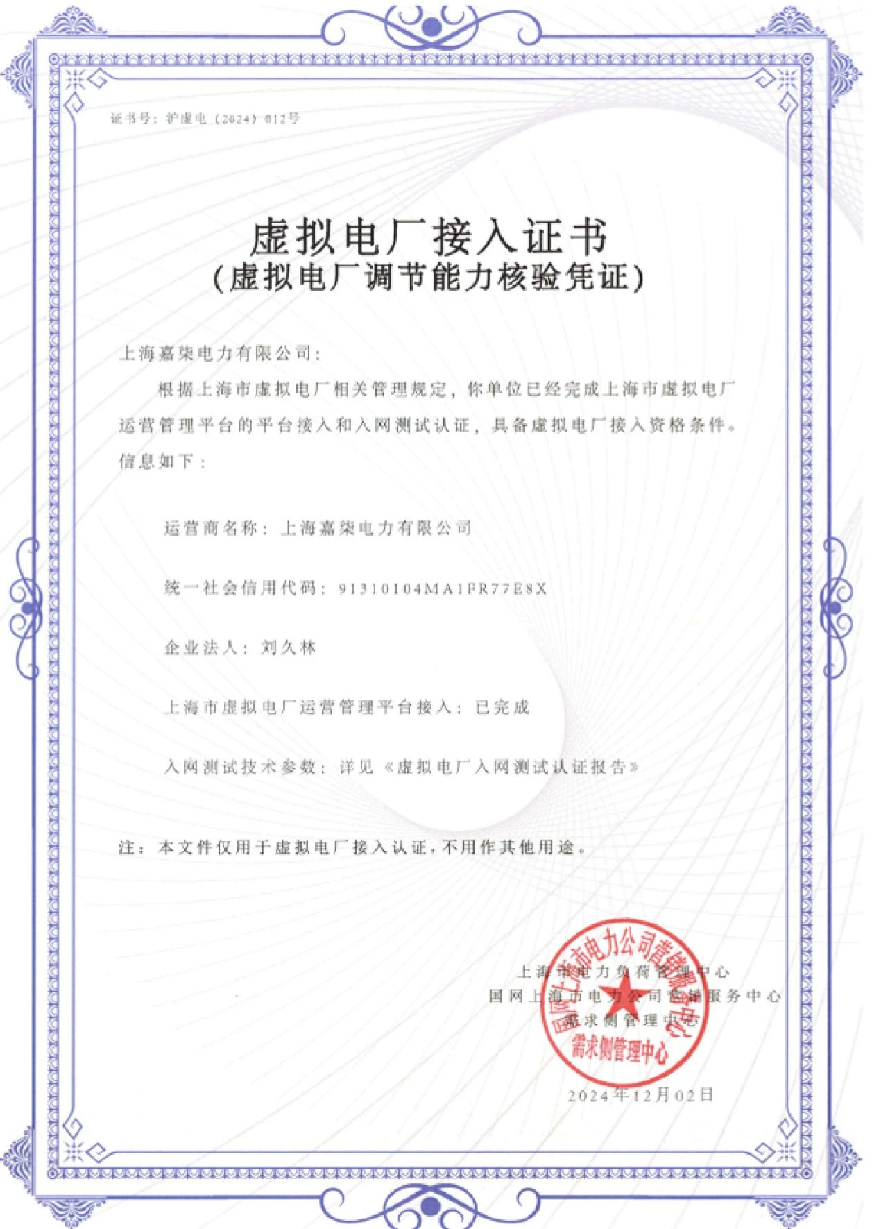 据了解,本次得到接入认证的是嘉柒自研的橙云——虚拟电厂负荷聚合商平台,目前已完成国网上海市电力公司的虚拟电厂测试,满足虚拟电厂技术规范,测试内容包括虚拟电厂各类资源数据采集精度测试和运营商平台调节性测试等,已于今年10月完成准入技术能力测试认证。