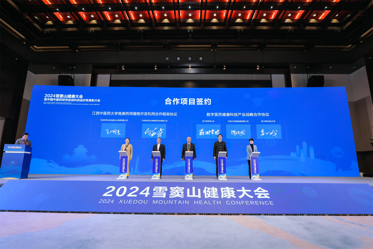 大会表彰了2024中国中医药研究促进科技进步奖162项,并向院士及国医大师颁发了《大健康产业首席评审专家》证书。紧接着,国家两部委5G+国医智谷奉化合作项目、江西中医药大学南美药用植物开发利用合作框架协议、纳米针核心技术联合攻关项目和一批医药健康项目集中签约落地奉化,从医疗服务、健康制造、健康养老、健康旅游、体育健身等诸多领域,共同助力奉化大健康产业高水平发展。