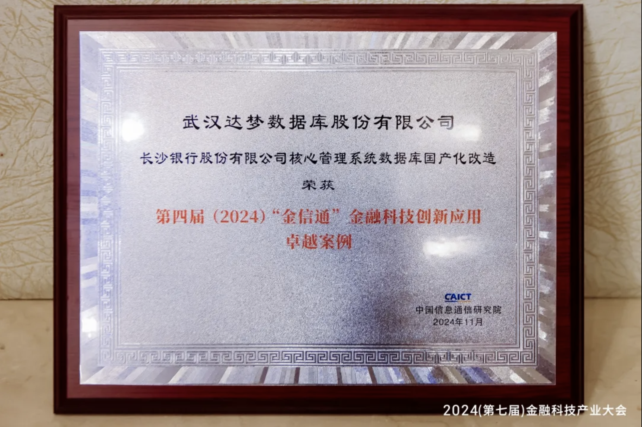 在数字化转型的浪潮中,达梦数据作为国产数据库的引领者,凭借其卓越的技术实力和创新应用,积极助力金融行业不断发展。通过与各金融行业的深入合作,达梦数据在推动金融科技进步方面取得了显著成就。11月29日,达梦数据凭借“长沙银行股份有限公司核心管理系统数据库国产化改造”项目成功荣获第四届(2024)“金信通”金融科技创新应用卓越案例。达梦数据助力湖北银行获得2020银保监会银行科技发展奖二类奖、2021人民银行科技三类奖;基于达梦数据库的“梅州客商银行核心自建工程”获评2021 IDC金融行业应用场景创新奖——金融新基建优秀案例奖;达梦数据支撑贵州农信网联支付平台国产化项目荣获2023 IDC中国金融行业技术应用场景创新奖;“达梦数据库管理系统及平滑迁移解决方案”荣获2024“金鼎奖”优秀金融科技应用创新案例奖等都充分展现了达梦数据在推动金融行业数字化转型中的关键作用。