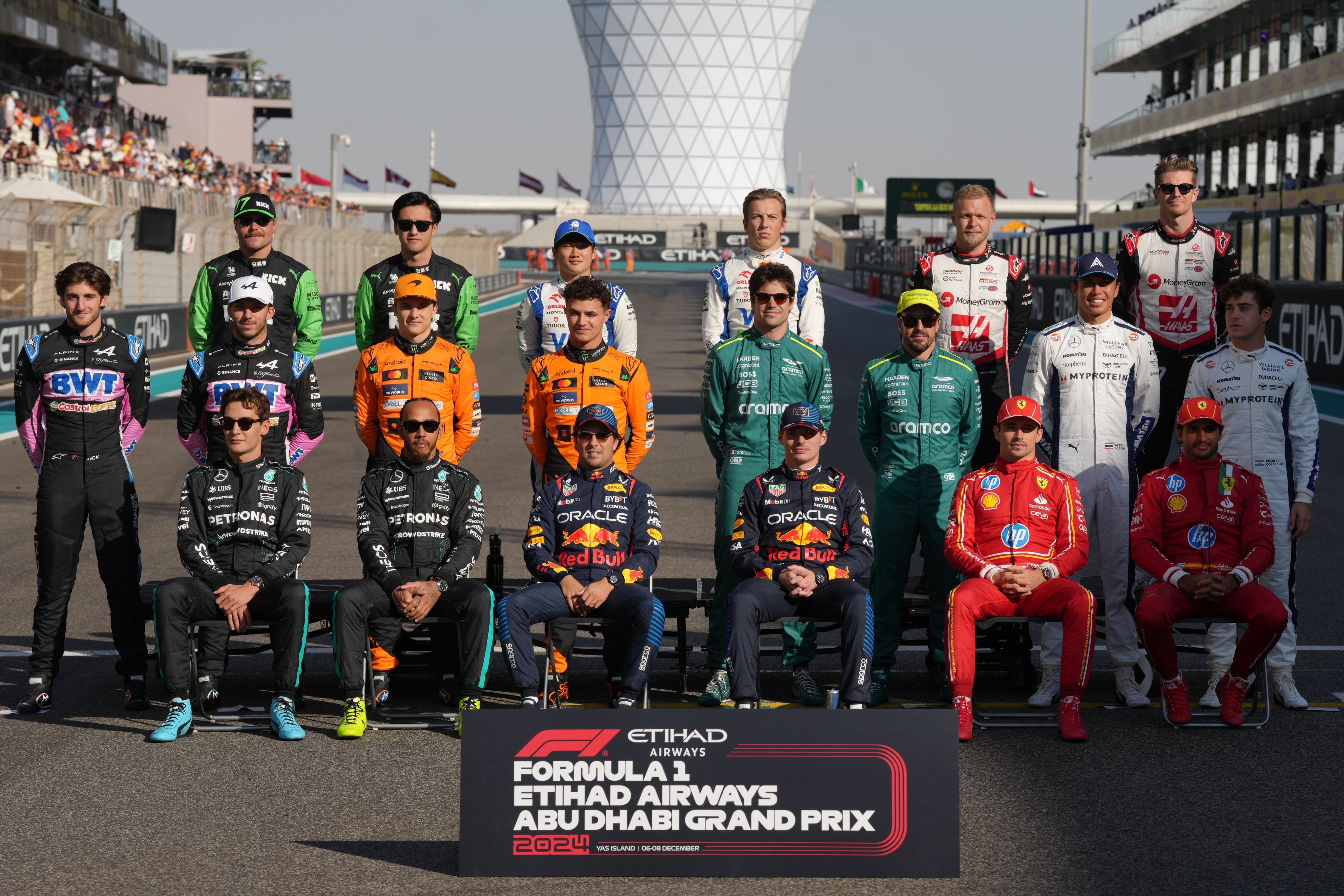 北京时间12月8日,F1官方发布了阿布扎比大奖赛赛前的车手合影,来自10支不同车队的20位车手齐聚一堂,拍摄F1 2024赛季的最后一张“全家福”。在这场比赛后,多位车手即将更换新东家或暂别F1赛场。