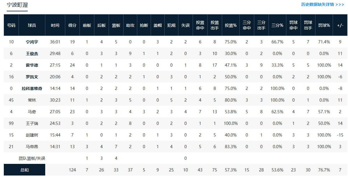 第四节宁波罗纳德-马奇拿下9分,深圳周鹏拿下13分,最终宁波124-117战胜深圳