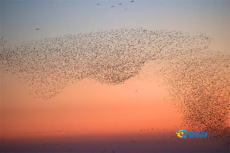 近日,黄河三角洲国家级自然保护区湿地上空出现“鸟浪”壮观景象。雁鸭鸟群腾空而起、蜂拥而至,它们时而追逐,时而翻腾,掀起一层又一层的鸟浪,优美造型如沙画般瞬息万变,吸引了全国各地摄影爱好者慕名而至。