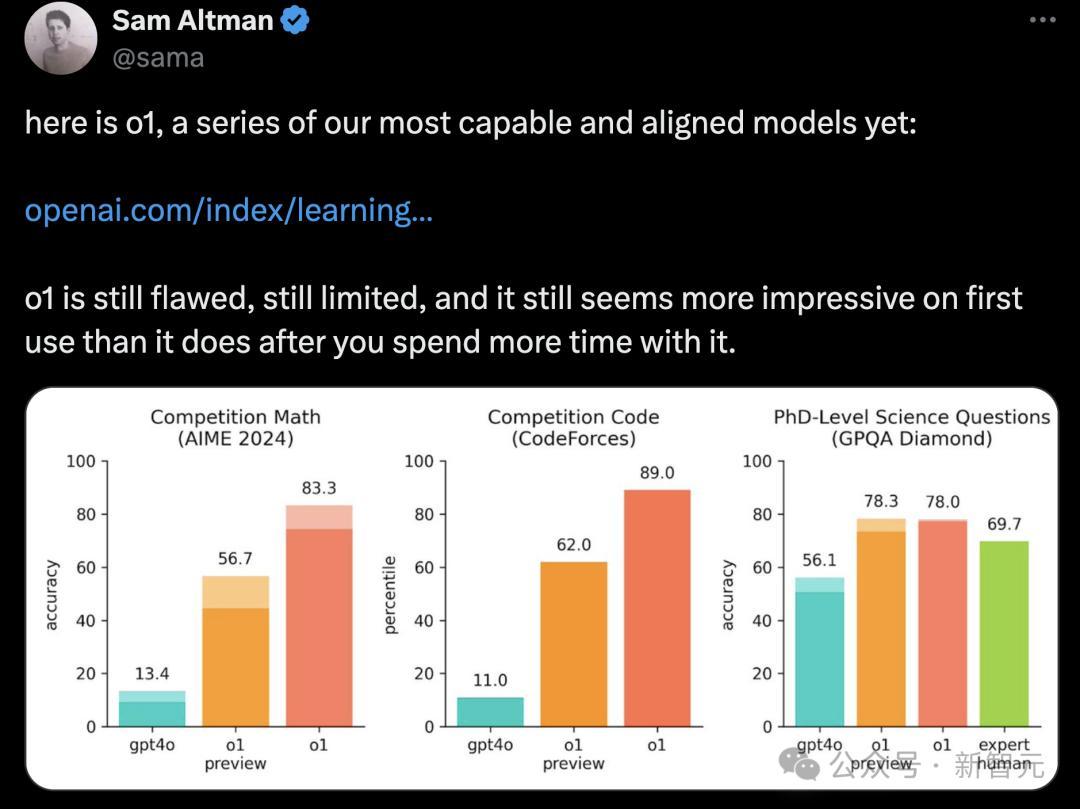 当时,OpenAI公开的测试结果显示,o1的数学性能大幅超越了GPT-4o,飙升43.3%实现了质的飞升。