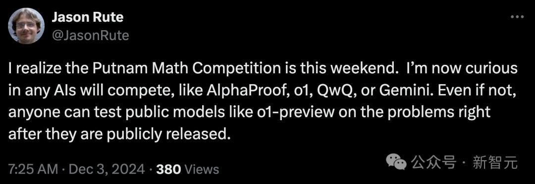 令人吃惊的是,有网友把此次普特南考试的考题给了OpenAI o1 pro。
