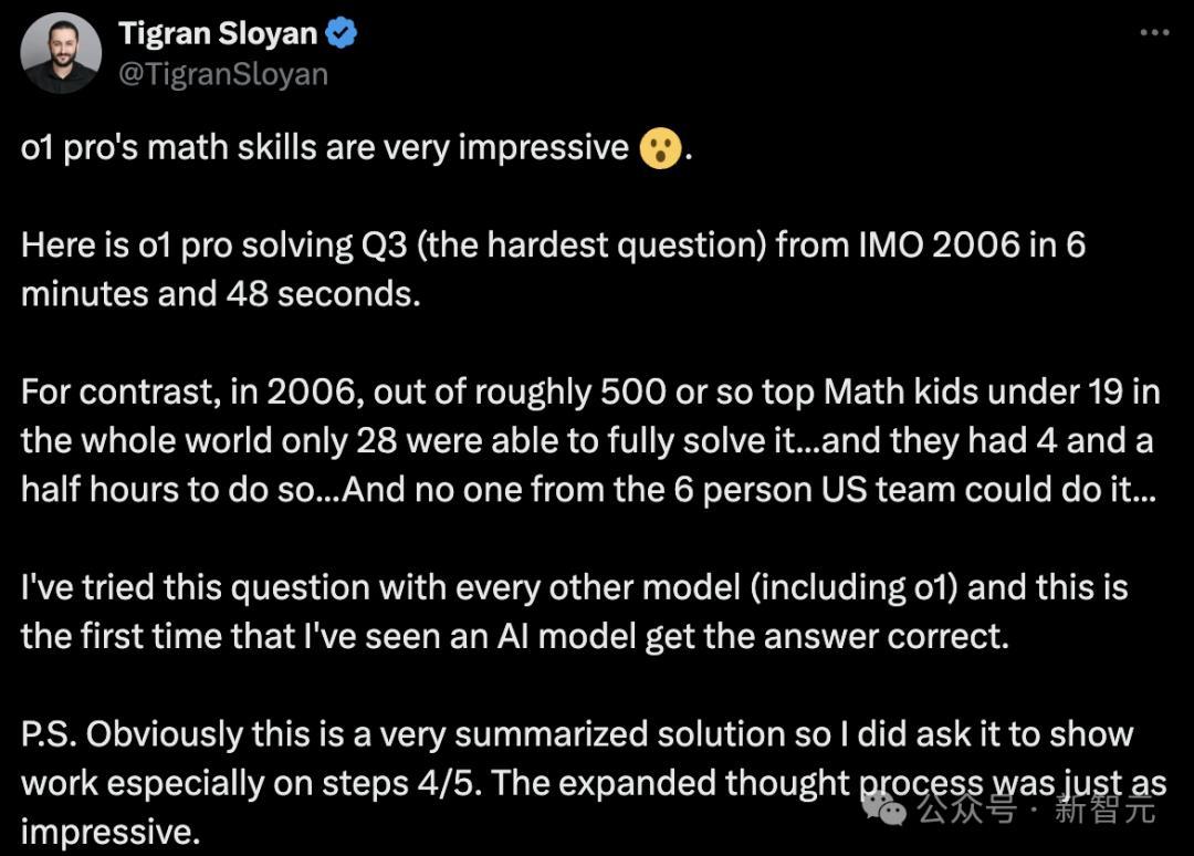 CodeSignal创始人Tigran Sloyan开启了两轮大测试,让o1 pro分别去解决普特南数学竞赛A1题,以及IMO试题。