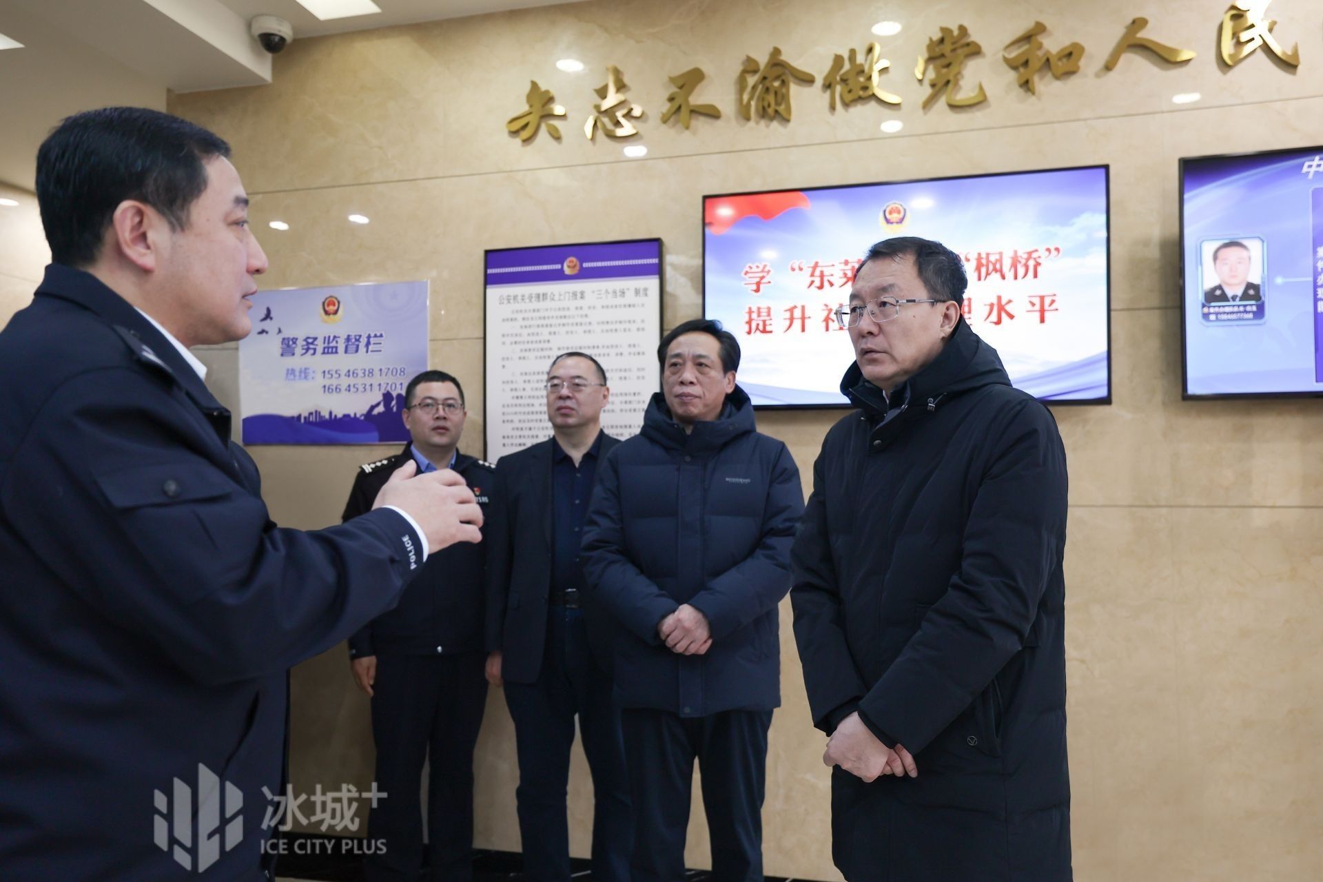 中源大街派出所负责24个社区、10余万人口的警务服务工作。于洪涛来到接警大厅、综合指挥室、信访室,详细了解“两队一室”和“警社共治”“警企共治”等机制运行情况,强调合理设置岗位、科学配置警力,做好“传帮带”,保证见警率、提高管事率,抓源头、重防范、盯重点、解矛盾,全力保障社会环境安全稳定、人民群众安居乐业。