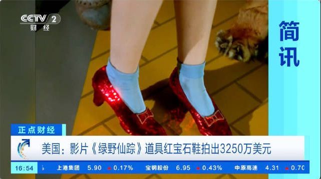 【#一影片道具红宝石鞋拍出3250万美元##绿野仙踪中道具鞋拍出超2.3亿元#】当地时间7日,在美国得克萨斯州达拉斯,一双红宝石鞋在当地举行的一场拍卖会上被成功拍出,包括佣金在内最后以3250万美元(约合2.36亿元人民币)的金额成交,远高于拍卖行此前预估的300万美元。这一成交价也打破了全球电影娱乐纪念品的拍卖纪录。这双红宝石鞋是1939年上映的好莱坞经典影片《绿野仙踪》女主角桃乐丝所穿的道具鞋。