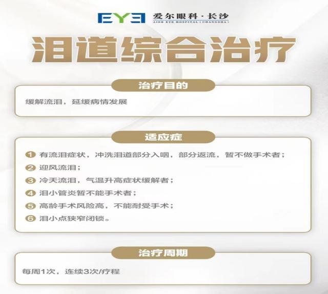 局部保守治疗无明显改善或症状逐渐加重,可以到长沙爱尔眼科医院进行泪道综合治疗,缓解流泪的症状。