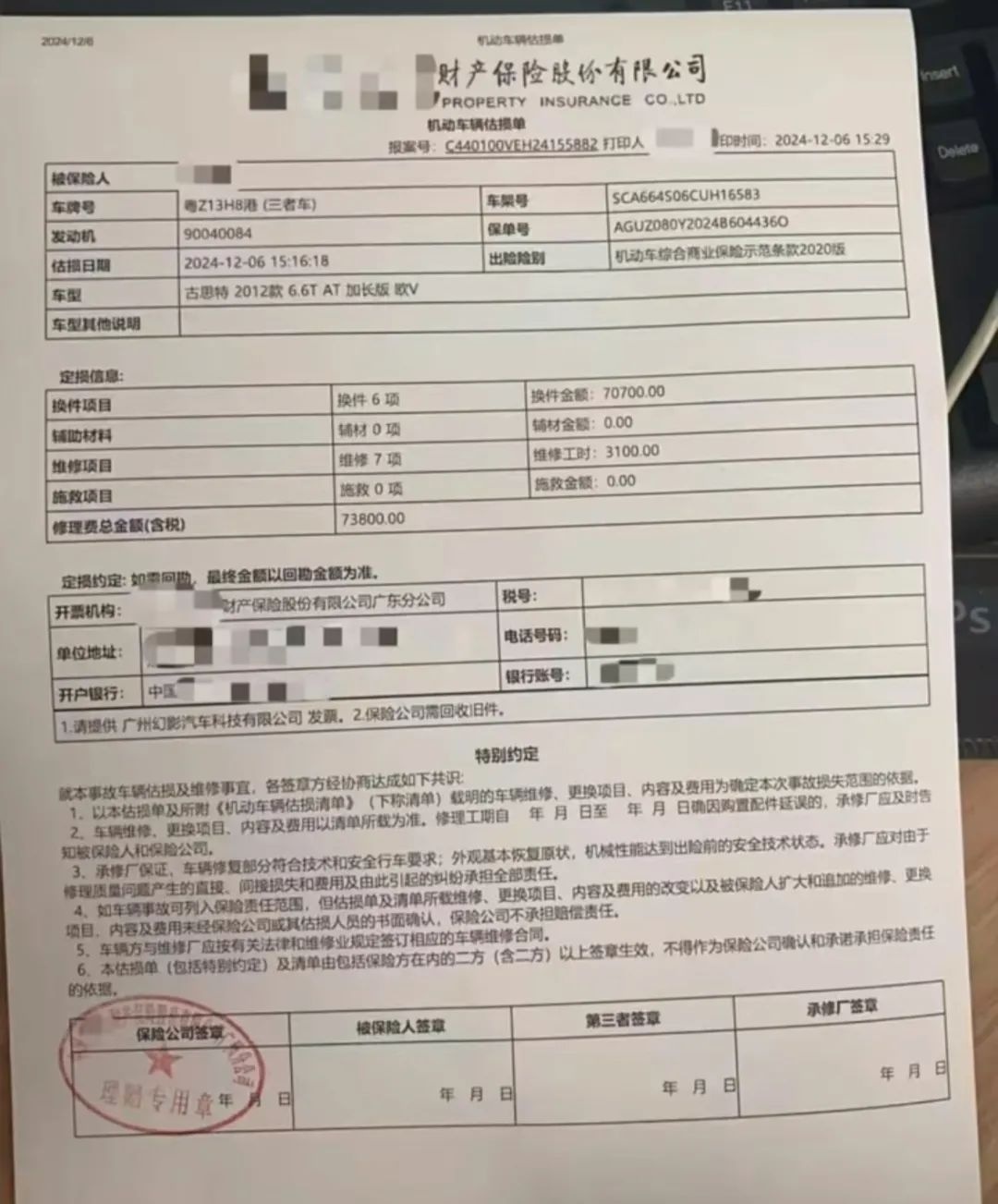 目前,事故双方选择重新走保险,劳斯莱斯车主在个人社交账号公布了定损信息,显示修理费总金额7.38万元。