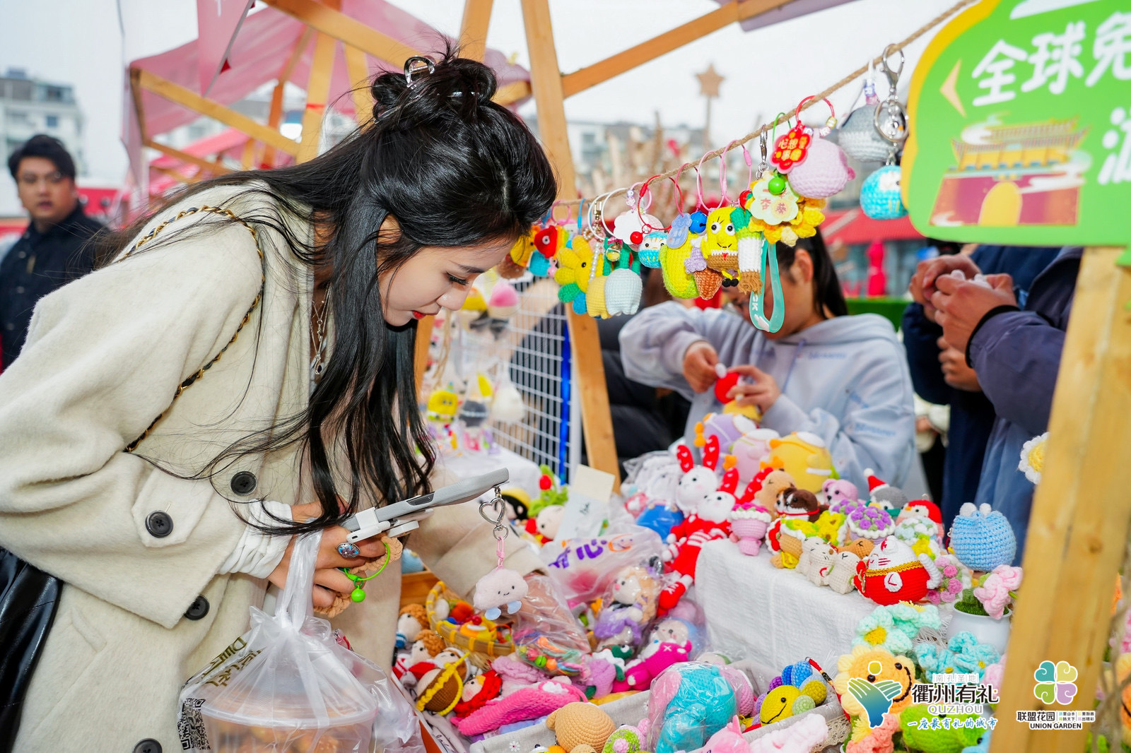 衢州年味市集则网罗本地美食与传统文化,不仅有邵永丰麻饼、谢继糕饼、衢州水晶糕、衢州鸭头、胡柚汁等特色美食,还有灯工琉璃、非遗漆扇、南孔木雕等精美手工艺品,与手工香包、diy手作等创意好物相得益彰,市民游客你来我往挑选商品,在家门口就置办好了年货大礼包。