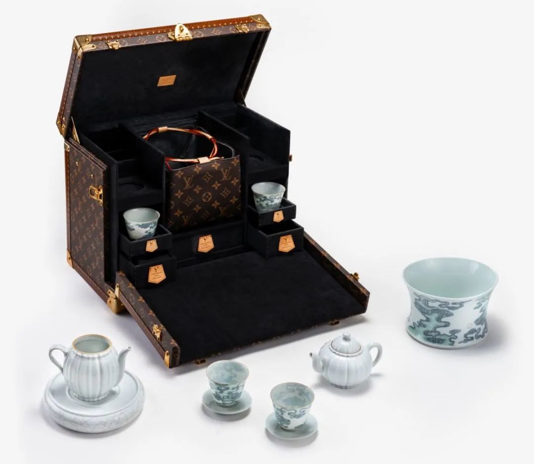 2024年,正值中法建交60周年,Louis Vuitton深入景德镇,邀请赏瓷观窑打造了一个全新的茶器箱:景德镇瓜棱斗彩祥云茶器箱。
