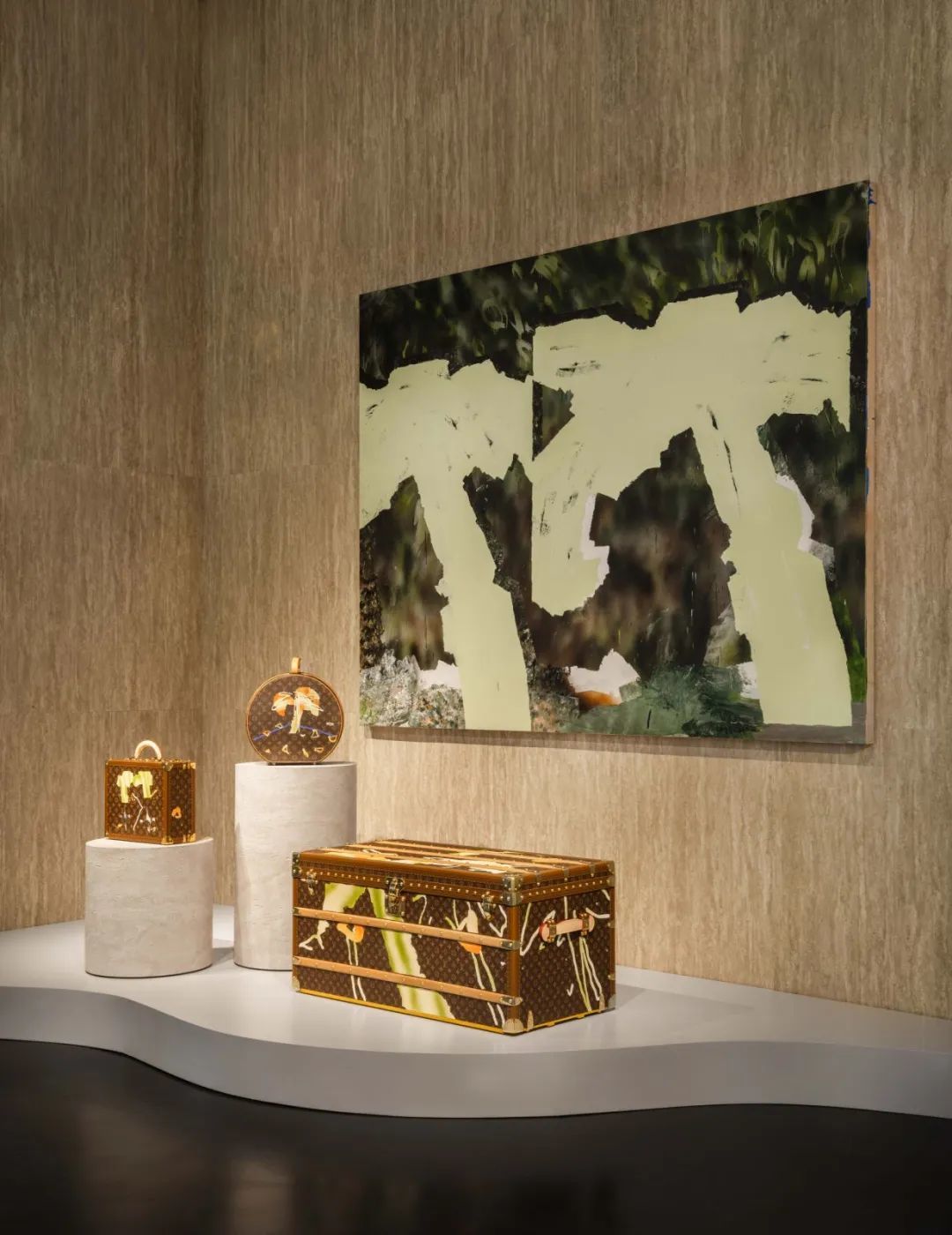 2023年,Louis Vuitton就与1988年出生的中国艺术家侯子超携手创造出三款硬箱:《洒果》《星路》与《落果岛》,它们分别的灵感来自侯子超的三幅作品:《好伴往丢飞随便》、《露黑湖夜晚到达》与《多渐进技两不同好朋友》。