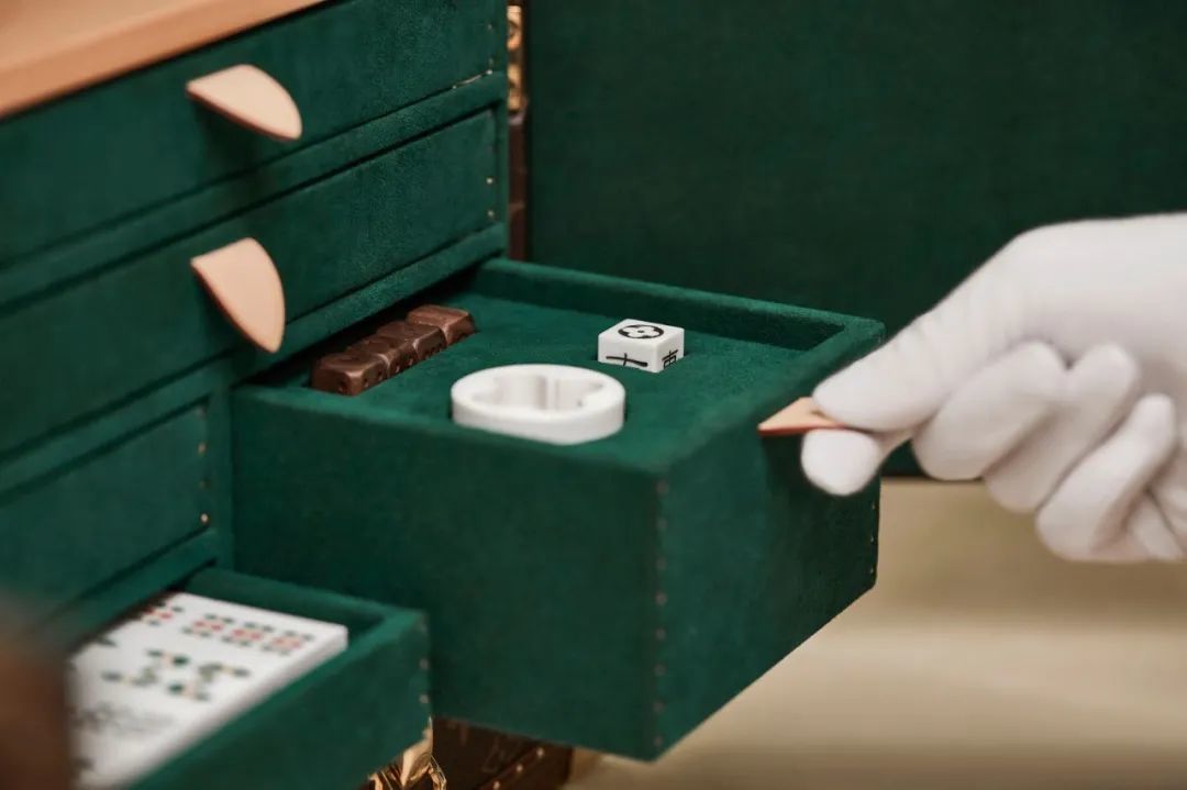比如,Louis Vuitton于2022年推出的Vanity麻将箱。这款为中式传统游戏定制的硬箱,其实在1950年代就有了雏形。那时候Louis Vuitton首次推出了麻将箱,就像他们为西洋棋、国际象棋、扑克等桌上游戏设计过一系列箱盒一样。当时这款箱子并不是为了中国市场而打造,麻将在全球范围都拥有其拥趸,包括好莱坞。这款Vanity麻将箱,可谓是东风西渐的产物。