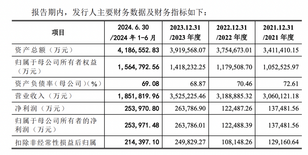 2021年至2024年上半年,中策橡胶营收分别为306.01亿元、318.89亿元、352.52亿元及185.18亿元,净利润分别为13.75亿元、12.25亿元、26.38亿元及25.4亿元,资产负债率分别为65.83%、65.25%、69.15%和70.29%,流动比率分别为0.88、1.00、0.96和0.89。