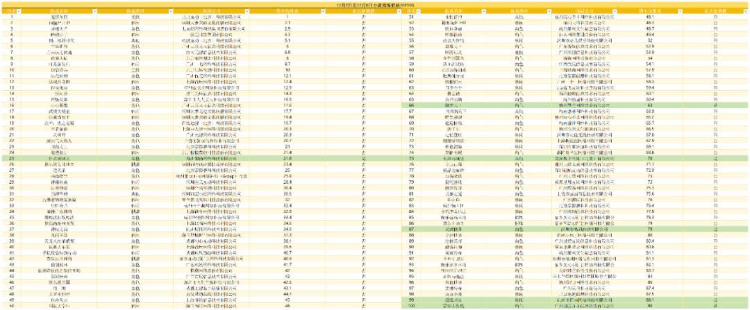 (12月第一周微信小游戏畅销榜TOP100,标绿的为新进榜)