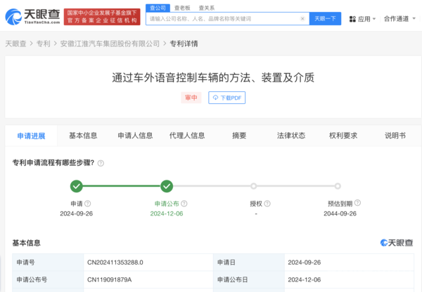 【CNMO科技消息】据CNMO了解,安徽江淮汽车集团股份有限公司(简称“江淮汽车”)申请的“通过车外语音控制车辆的方法、装置及介质”专利于近日正式公布。该技术允许用户在车辆外部通过语音指令对车辆进行控制。