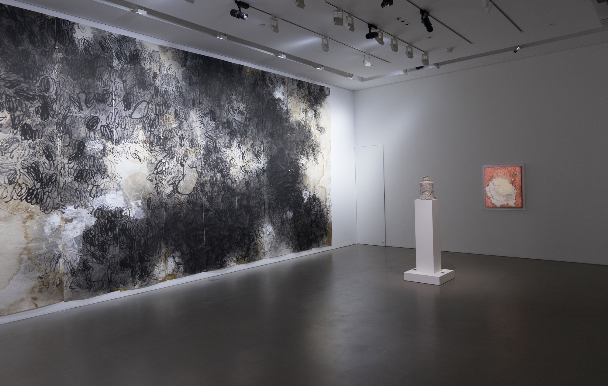 廖渊⼀直在探索⽔墨、茶与宣纸等材料的潜在特性,并沿袭了中国古代绘画描绘时间流动的传统。 展览共呈现廖渊的五幅绘画、一件雕塑,以及廖渊于近期创作的关于宇宙的系列画作。这些都是艺术家近几年来探索艺术创作道路上的重要作品,展现了他对于艺术本质的追问,以及对自身袭承的土地与文化的再表达。