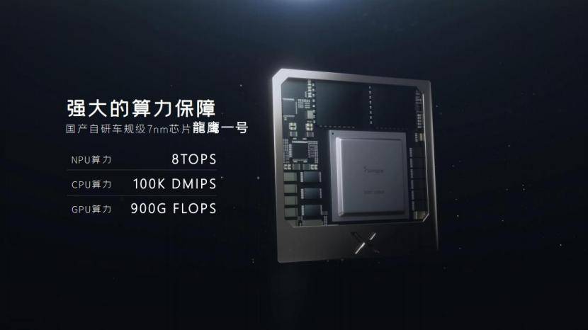 强大的系统一定有强大的硬件和算力保证,支撑银河Flyme Auto运行的,国产第一颗车规级7nm芯片“龍鷹一号”,其AI算力高达8TOPS,不仅超过麒麟990A,甚至是高通8155的2倍;CPU和GPU也具备超强算力,车机响应更迅速,无论是语音导航还是娱乐互动,都尽在掌握。
