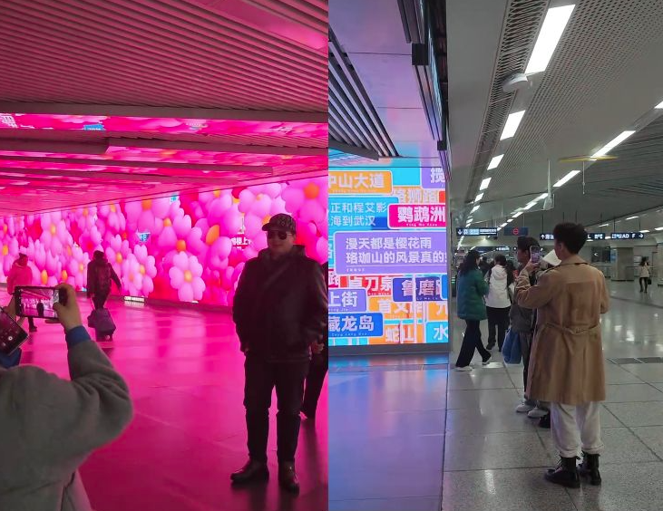 “街道口的地铁站也太浪漫了吧!”近日,武汉市街道口地铁站内8号线和2号线的换乘通道处出现“樱花”景观,引来行人驻足拍照。