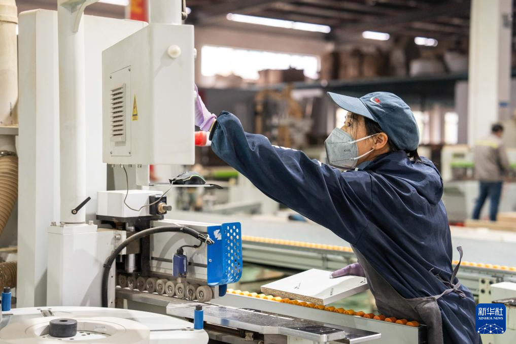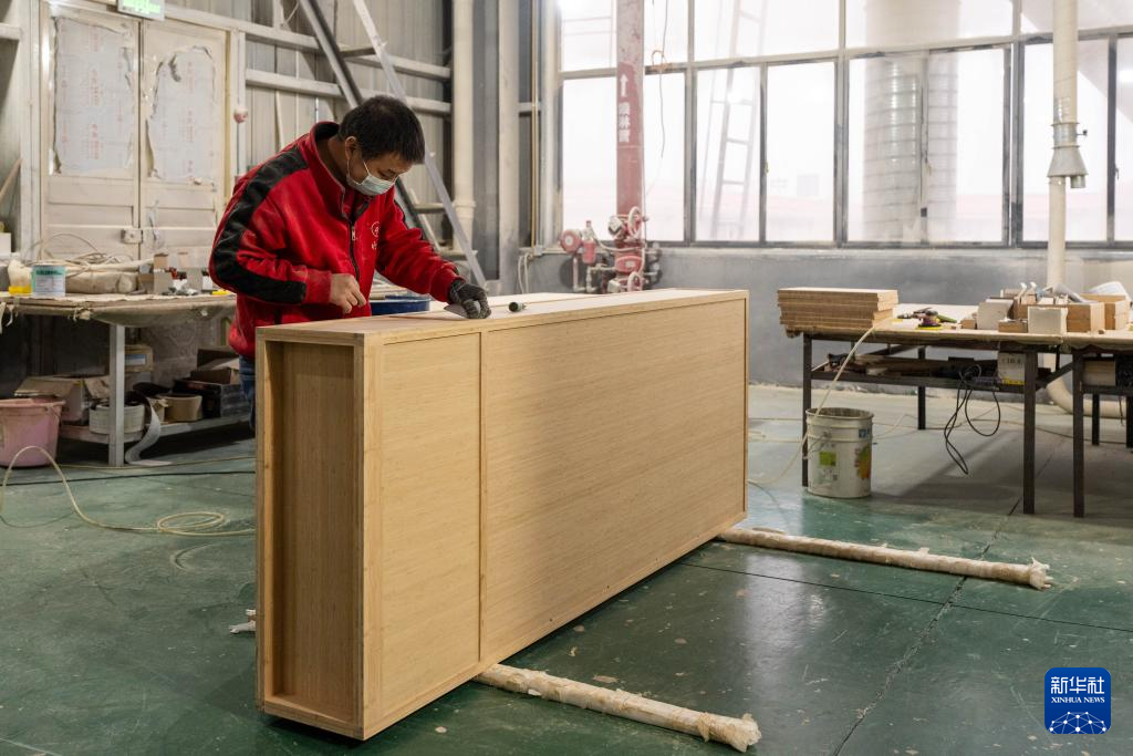 12月10日,在永州市双牌竹木产业科技园,湖南永竹竹业科技有限公司的工人在生产竹木家具。新华社记者 陈思汗 摄