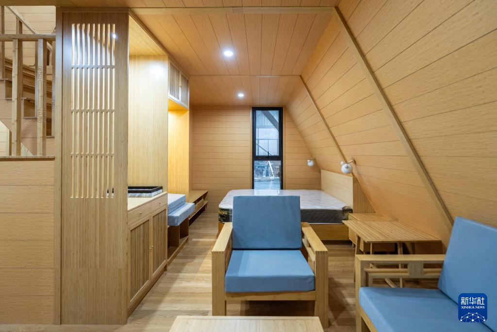 这是12月10日在永州市双牌竹木产业科技园的一家公司内拍摄的钢竹结构民宿内景。新华社记者 陈思汗 摄