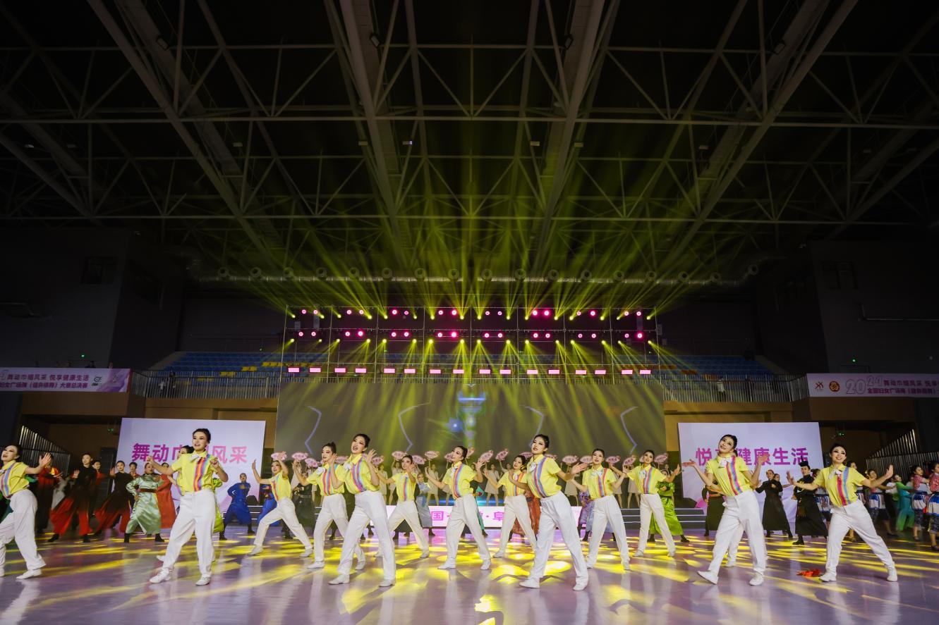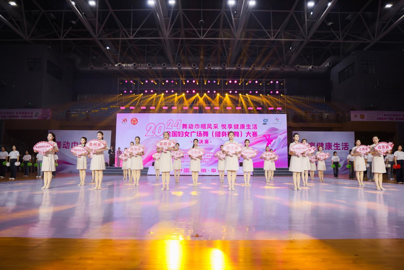 12月11日上午,由国家体育总局、中华全国妇女联合会主办,国家体育总局群众体育司、中华全国妇女联合会宣传部、国家体育总局体操运动管理中心、安徽省体育局、安徽省妇女联合会、阜阳市人民政府承办,安徽省社会体育指导中心、阜阳市文化旅游体育局、阜阳市妇女联合会、阜阳市卫生健康委、颍州区人民政府、阜阳理工学院协办的“舞动巾帼风采 悦享健康生活”2024年全国妇女广场舞(健身操舞)大赛总决赛在安徽省阜阳理工学院体育馆盛大启幕。