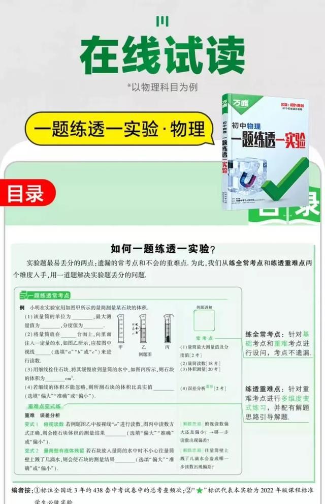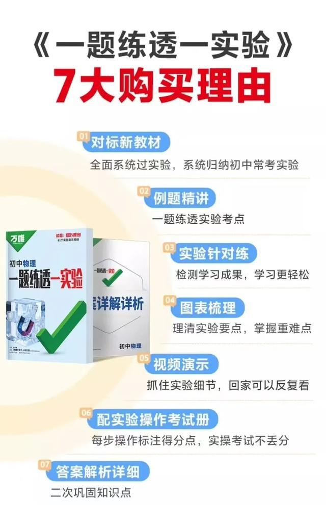 其实,有一份中考物理资料,适合每一位八九年级学生,这份资料就是《一题练透一实验》,此资料是中考教辅全国销量第一的万唯出品!
