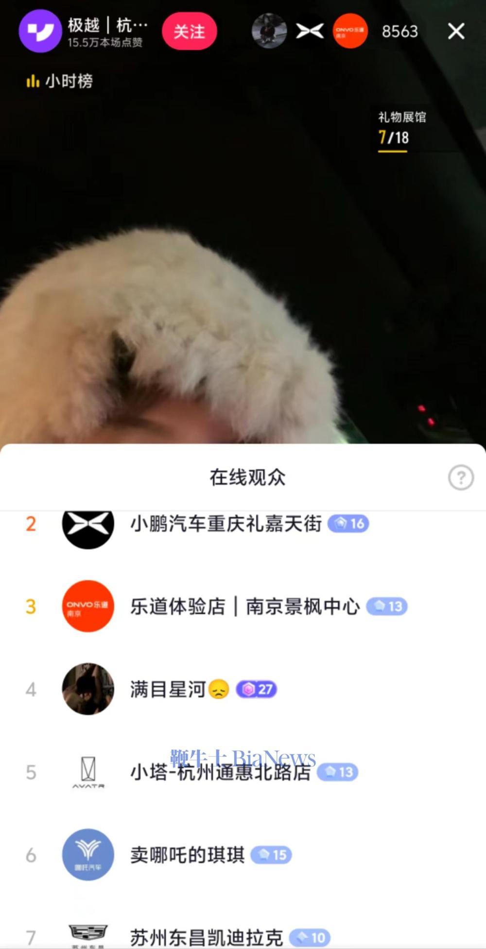 鞭牛士 12月12日消息,今日,位于杭州的一位极越主播在线求职,小鹏汽车、蔚来、问界、阿维塔、乐道汽车、保时捷等车企纷纷涌入直播间观看并赠送礼物。