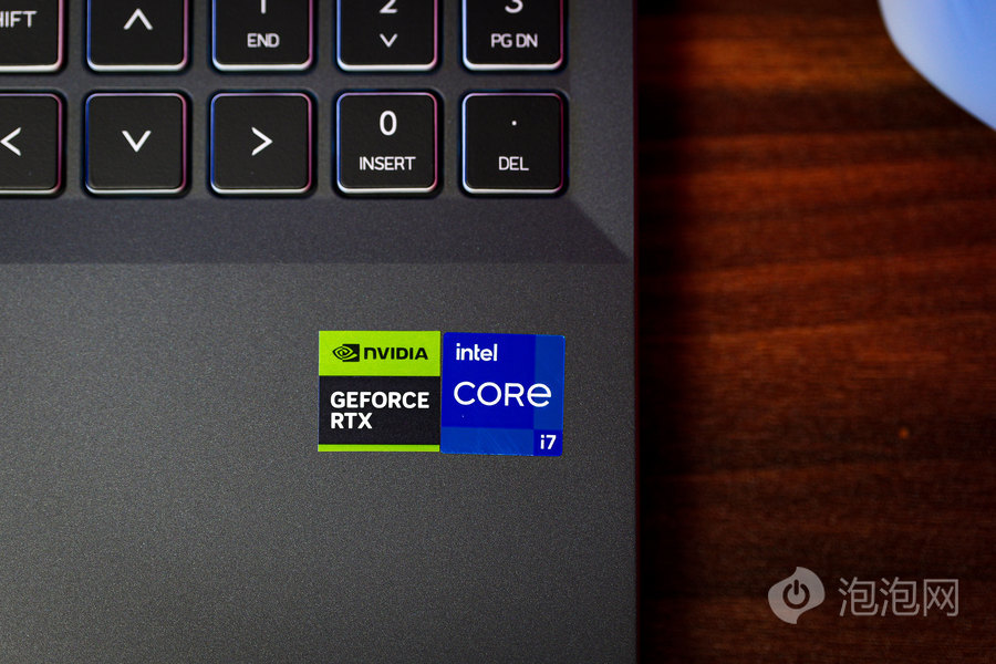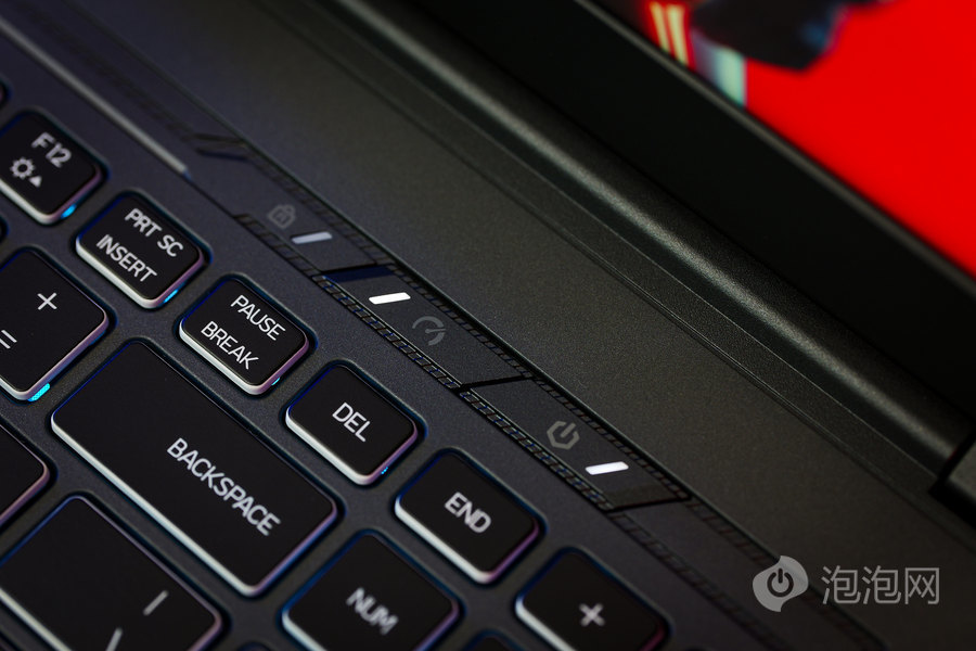 在按键上方,C面右上角的位置是笔记本的模式切换按键与电源键,通过模式切换按键可以快速切换游戏本的性能模式,既可以满足游戏的强劲输出,又可以实现办公的超长续航体验。