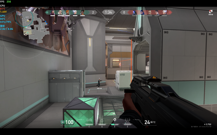 暗影骑士·擎6的高刷新率屏幕也非常适合玩射击类的游戏,在游戏过程中,《无畏契约》的帧率普遍都在256FPS以上,开枪、换枪过程丝滑流畅,帮助玩家在游戏中取得更好的成绩。