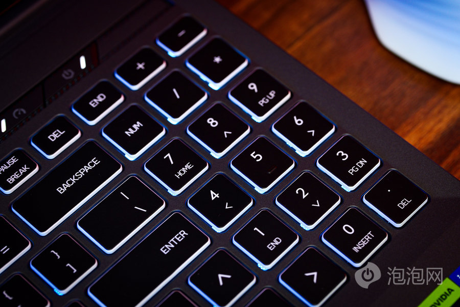 暗影骑士·擎6的C面也很有设计感,其采用RGB背光键盘,带来浓厚的电竞氛围。值得一提的是,暗影骑士·擎6不仅配备了全尺寸方向键,而且也拥有数字小键盘区域,在操控与日常使用时,都会更加的方便。