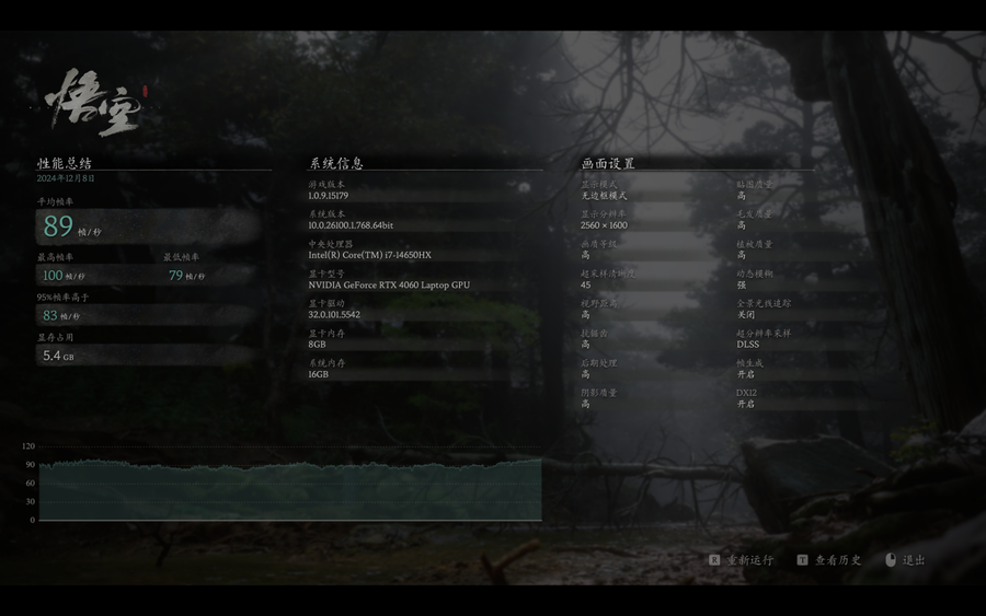 《黑神话:悟空》高画质下,平均帧率可以达到89帧/秒,游戏过程非常流畅,获得优秀的游戏体验。