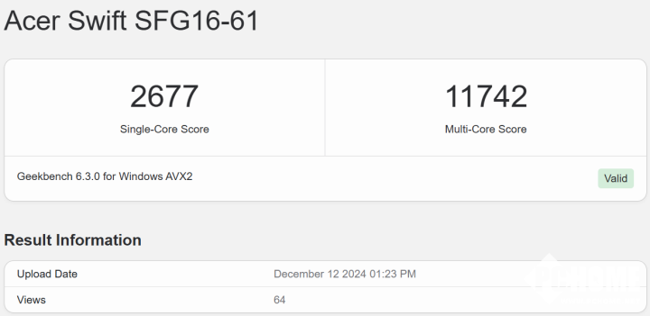 而在Geekbench 6.3 CPU基准测试当中,这颗处理器单线程得分为2677,多线程得分为11742,这个得分高于现在的锐龙7 8845HS(单线程2342,多线程11039),也高于酷睿Ultra 7 258V(单线程2669,多线程11075)。不过这颗处理器真正的对手应该是尚未发布的中低端Arrow Lake-H系列处理器,我们可能要等到产品发布之后再进行对比。