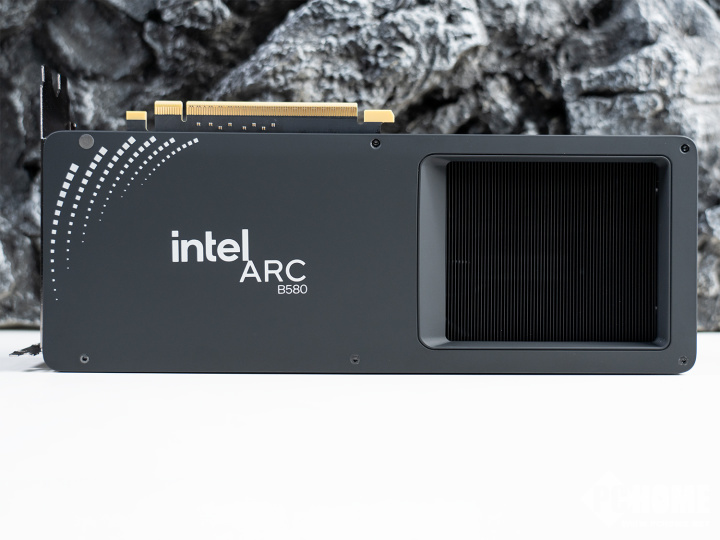 不过,B580 Limited Edition作为这一代定位中端的产品,并没有配备上一代A770的灯环设计,但依旧保留了上方的“Intel Arc”发光标志,让整卡依旧保留了非常不错的辨识度。