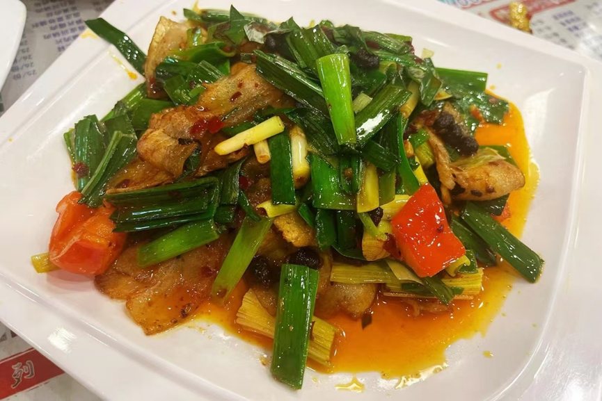 回锅肉里虽然“误入”两片甜椒,但蒜苗、豆瓣、豆豉的组合,还是十分地道。