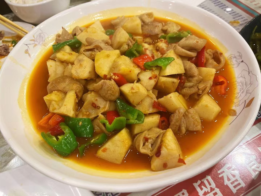 我们行程中有一天,是从那拉提草原到伊宁,中午路经新源县城,就去吃了一顿川菜。