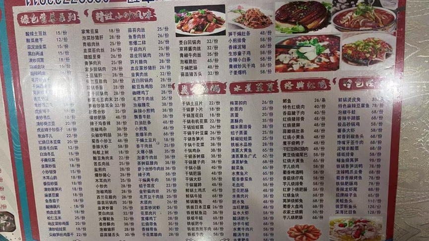 这算是县城的闹市区,餐馆林立,汉餐和清真餐都有。这家川菜馆就在两家清真餐馆之间,十分和谐。