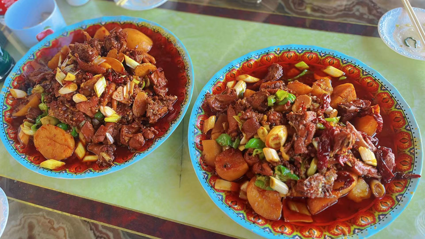 沙湾大盘鸡论只卖,一只是两大盘。