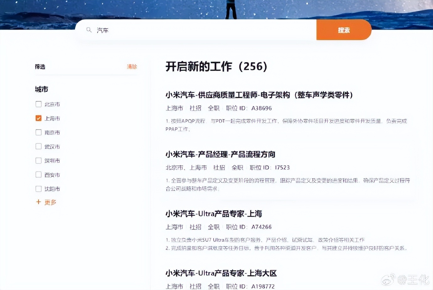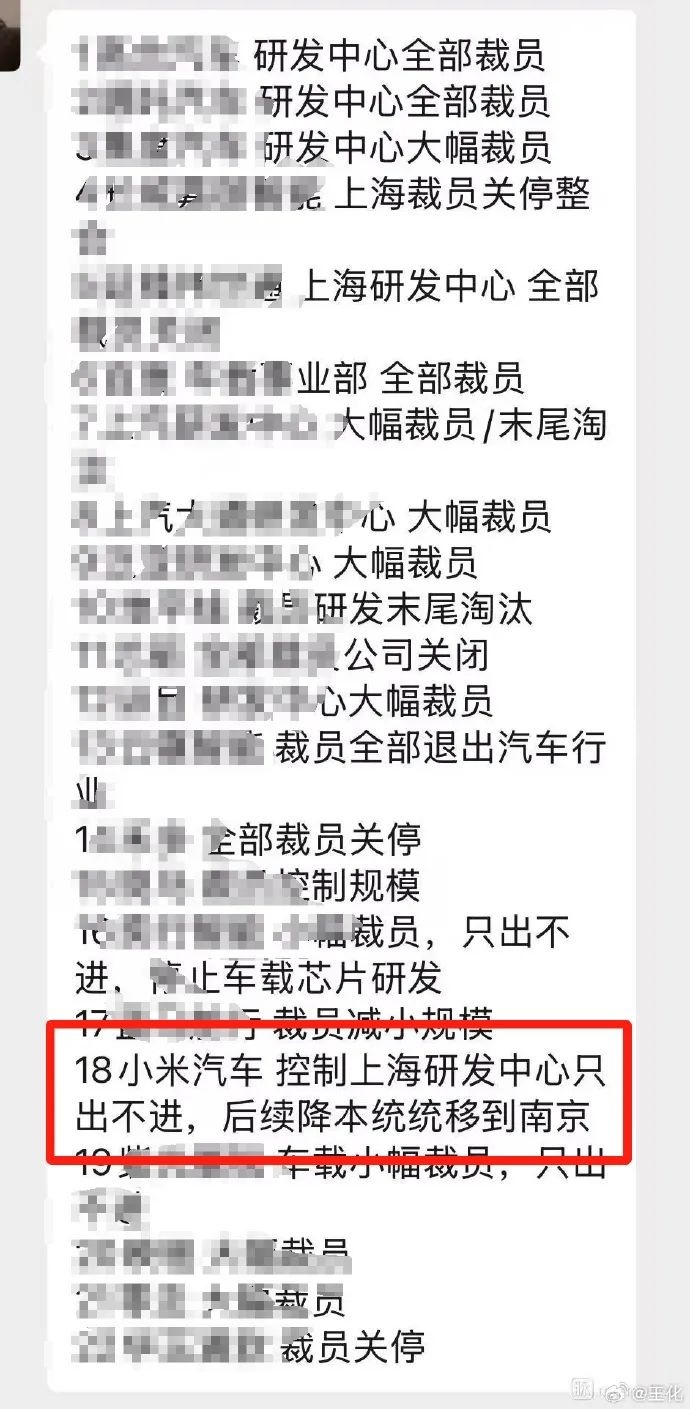 王化发文:“最近陆续在一些社交媒体和群里面看到有关‘小米汽车控制上海研发中心只出不进,后续降本统统移到南京’的说法,据我所知上海目前还在扩招,欢迎大家去投简历。”