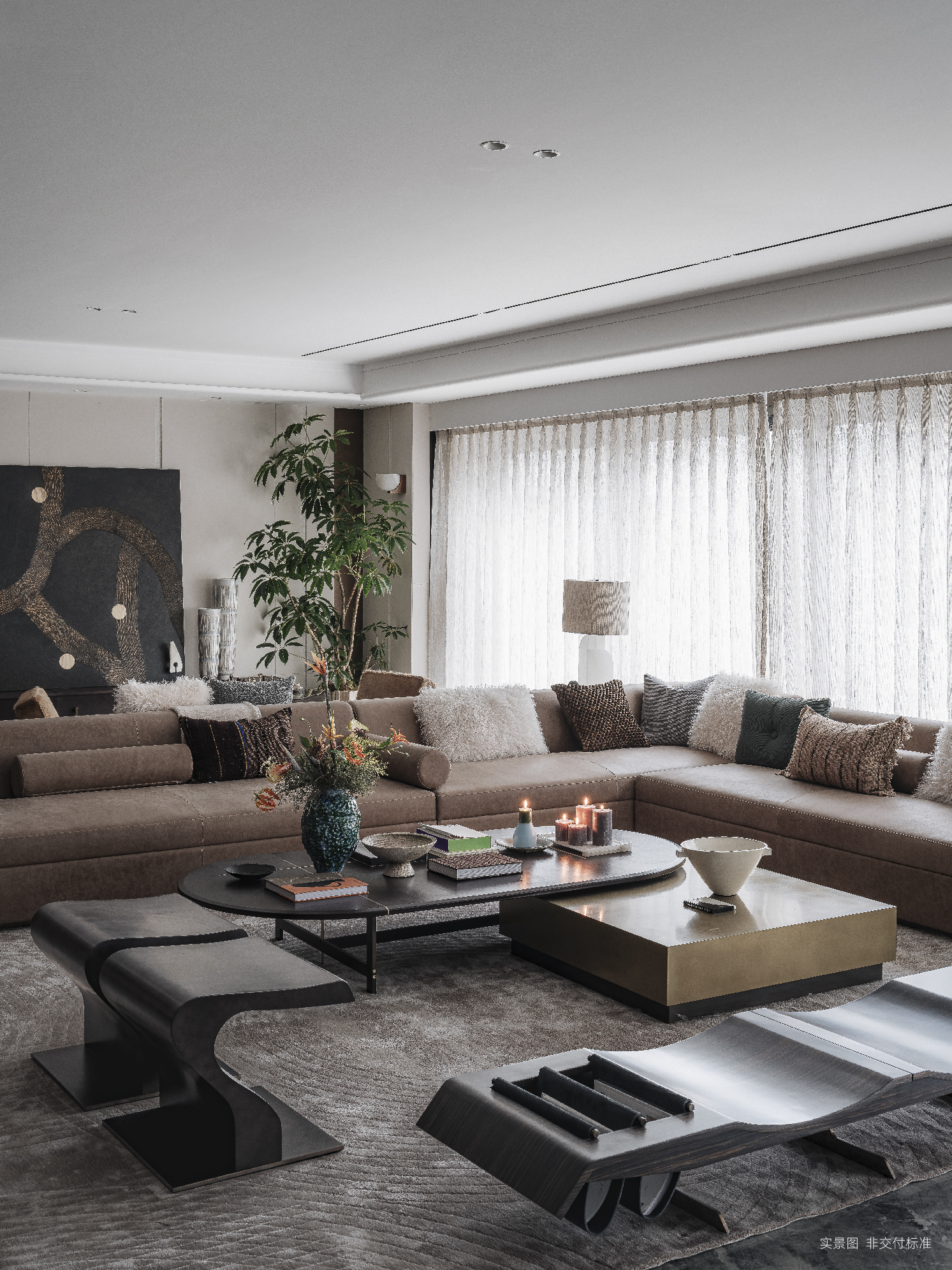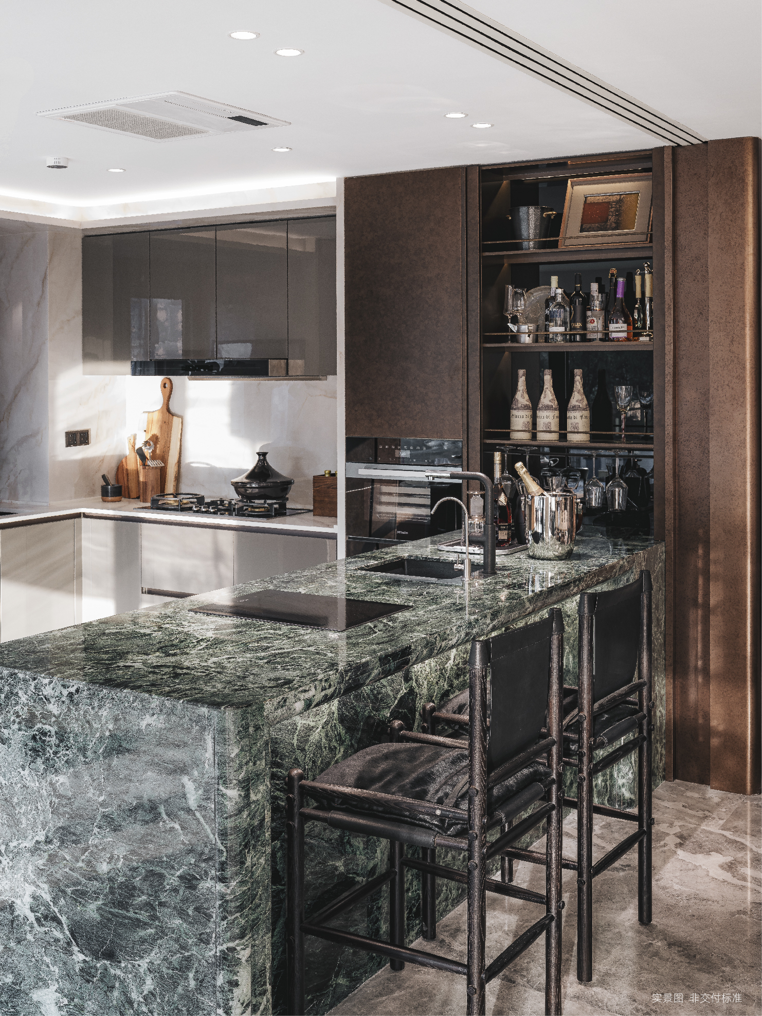 重点来了,这次新开的建面约315㎡样板间由LSD大师设计团队,在装修方面可谓诚意满满,从地面到墙面到壁龛都是石材,提升居住整体的格调,配置了十件套厨房家电,甚至酒柜!;南向3个卧室全套房,得房率80%+,更有270°弧形天际窗景,电动窗、独立式浴缸…..交付标准真的是诚意满满。
