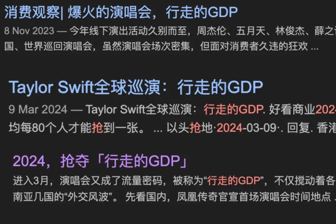 大型演唱会的溢出效应当然不仅体现在泰勒·斯威夫特身上,周杰伦、五月天、张学友、陈奕迅、张杰、薛之谦、碧昂斯(Beyoncé)坎耶·韦斯特(Kanye West)、阿黛尔(Adele)等等大牌艺人都曾被称为“行走的GDP”。