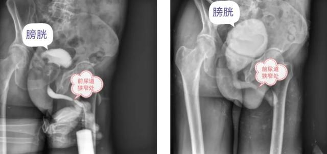 (▲尿道造影提示前尿道狭窄)